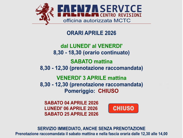 CENTRO REVISIONI FAENZA SERVICE opera nel settore delle revisioni veicoli, distinguendosi per la professionalità e la competenza dei propri operatori a cui garantisce una continua formazione ed un sistematico aggiornamento.